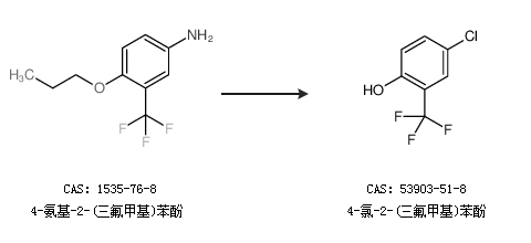2.通过4-氨基-2-(三氟甲基)苯酚合成4-氯-2-(三氟甲基)苯酚