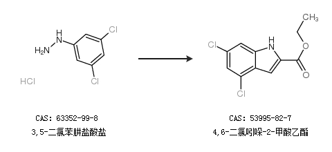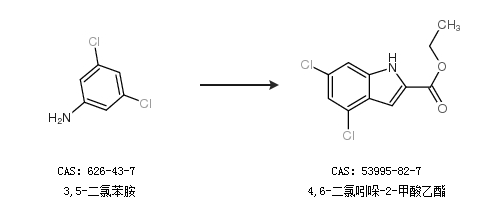 1.通过3,5-二氯苯胺合成4,6-二氯吲哚-2-甲酸乙酯