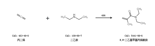 1.通过丙二烯和二乙胺合成N,N-二乙基甲基丙烯酰胺,收率约49%;