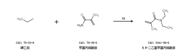2.通过碘乙烷和甲基丙烯酰胺合成N,N-二乙基甲基丙烯酰胺,收率约5%;