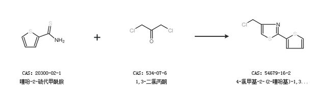 2.通过噻吩-2-硫代甲酰胺和1,3-二氯丙酮合成4-氯甲基-2-(2-噻吩基)-1,3-噻唑