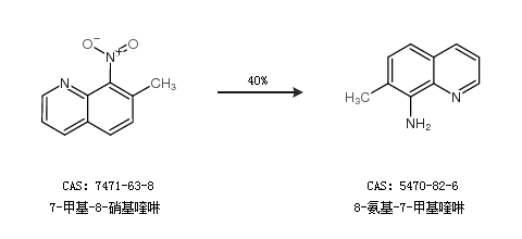 1.通过7-甲基-8-硝基喹啉合成8-氨基-7-甲基喹啉,收率约40%;