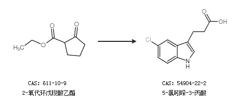 2.通过2-氧代环戊羧酸乙酯合成5-氯吲哚-3-丙酸