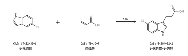 1.通过5-氯吲哚和丙烯酸合成5-氯吲哚-3-丙酸,收率约47%;