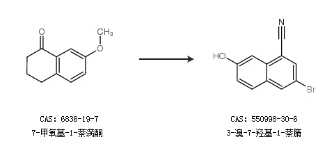 1.通过7-甲氧基-1-萘满酮合成3-溴-7-羟基-1-萘腈