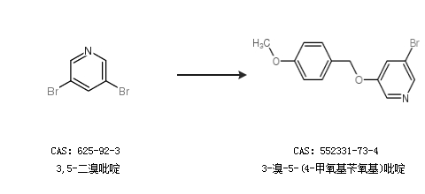 2.通过3,5-二溴吡啶合成3-溴-5-(4-甲氧基苄氧基)吡啶