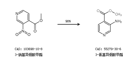 1.通过3-硝基异烟酸甲酯合成3-氨基异烟酸甲酯,收率约98%;