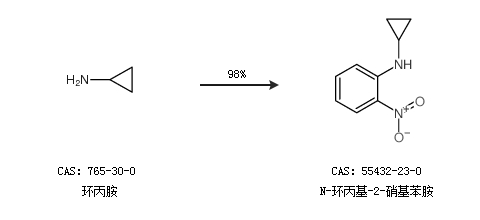 1.通过环丙胺合成N-环丙基-2-硝基苯胺,收率约98%;