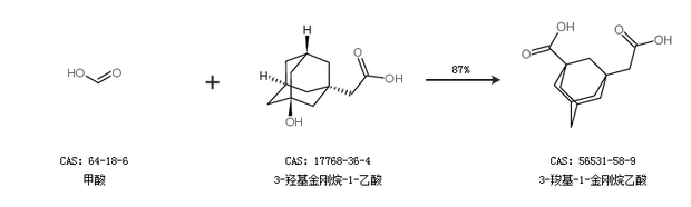 1.通过甲酸和3-羟基金刚烷-1-乙酸合成3-羧基-1-金刚烷乙酸,收率约87%;