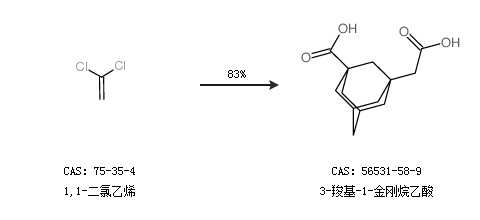 2.通过1,1-二氯乙烯合成3-羧基-1-金刚烷乙酸,收率约83%;