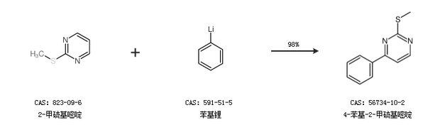 1.通过2-甲硫基嘧啶和苯基锂合成4-苯基-2-甲硫基嘧啶,收率约98%;