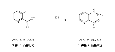 1.通过3-氟-2-硝基吡啶合成3-肼基-2-硝基吡啶,收率约80%;