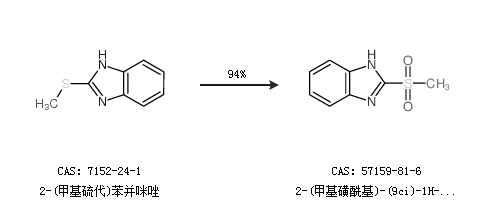 1.通过2-(甲基硫代)苯并咪唑合成2-(甲基磺酰基)-(9ci)-1H-苯并咪唑,收率约94%;