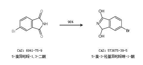 1.通过5-溴异吲哚-1,3-二酮合成5-溴-3-羟基异吲哚啉-1-酮,收率约96%;
