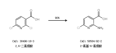1.通过2,6-二氯烟酸合成2-氨基-6-氯烟酸,收率约90%;