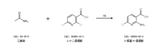 2.通过乙酰胺和2,6-二氯烟酸合成2-氨基-6-氯烟酸,收率约5%;