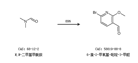 1.通过N,N-二甲基甲酰胺合成6-溴-2-甲氧基-吡啶-3-甲醛,收率约89%;