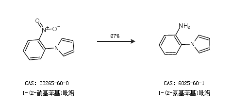 1.通过1-(2-硝基苯基)吡咯合成1-(2-氨基苯基)吡咯,收率约67%;
