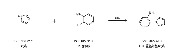 2.通过吡咯和2-溴苯胺合成1-(2-氨基苯基)吡咯,收率约81%;