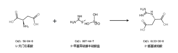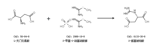 2.通过L-天门冬氨酸和2-甲基-2-疏基硫酸脲合成2-胍基琥珀酸