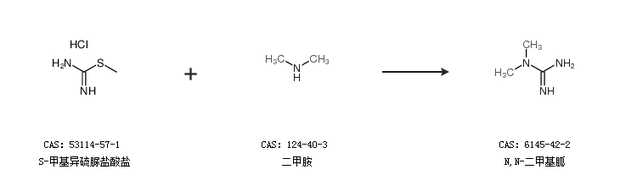1.通过S-甲基异硫脲盐酸盐和二甲胺合成N,N-二甲基胍