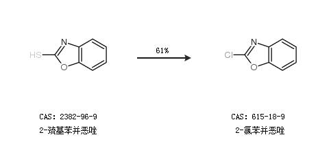 1.通过2-巯基苯并恶唑合成2-氯苯并恶唑,收率约61%;