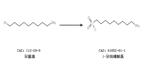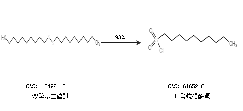 1.通过双癸基二硫醚合成1-癸烷磺酰氯,收率约93%;