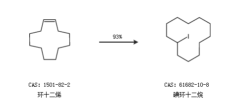 1.通过环十二烯合成碘环十二烷,收率约93%;
