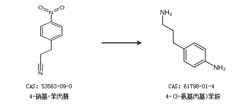 1.通过4-硝基-苯丙腈合成4-(3-氨基丙基)苯胺