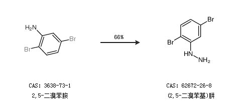 1.通过2,5-二溴苯胺合成(2,5-二溴苯基)肼,收率约66%;
