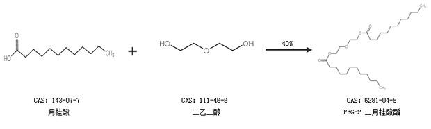 1.通过月桂酸和二乙二醇合成PEG-2 二月桂酸酯,收率约40%;