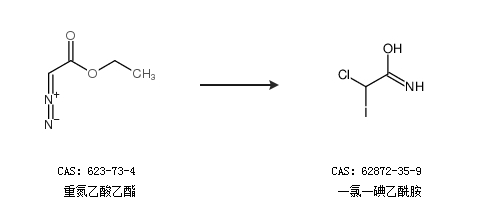 1.通过重氮乙酸乙酯合成一氯一碘乙酰胺