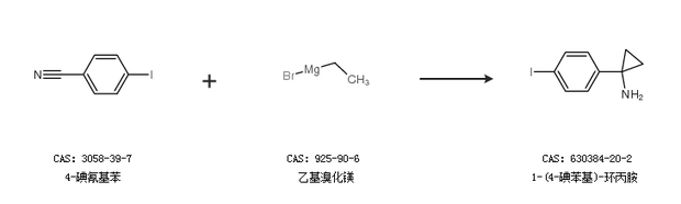1.通过4-碘氰基苯和乙基溴化镁合成1-(4-碘苯基)-环丙胺