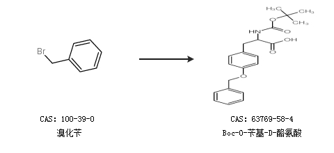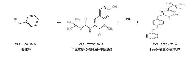 1.通过溴化苄和丁氧羰基-D-酪氨酸-甲氧基酯合成Boc-O-苄基-D-酪氨酸,收率约73%;