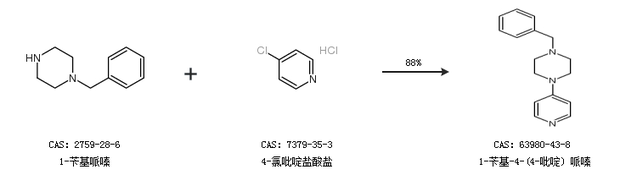 2.通过1-苄基哌嗪和4-氯吡啶盐酸盐合成1-苄基-4-(4-吡啶) 哌嗪,收率约88%;