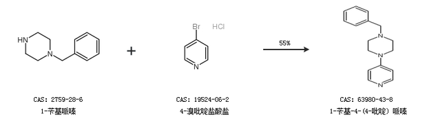 1.通过1-苄基哌嗪和4-溴吡啶盐酸盐合成1-苄基-4-(4-吡啶) 哌嗪,收率约55%;
