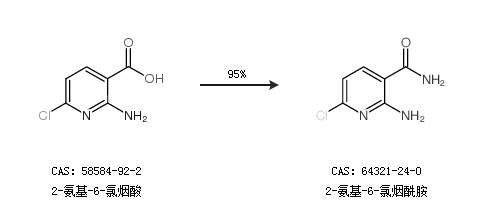 1.通过2-氨基-6-氯烟酸合成2-氨基-6-氯烟酰胺,收率约95%;