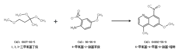 2.通过1,3,3-三甲氧基丁烷和4-甲氧基-2-硝基苯胺合成6-甲氧基-4-甲基-8-硝基-喹啉