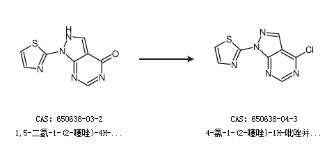 中文名称 4-氯-1-(2-噻唑)-1H-吡唑并[3,4-d]嘧啶