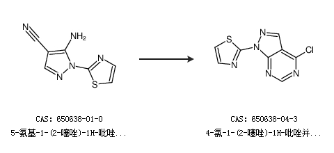 英文名称 2-(4-chloropyrazolo[3,4-d]pyrimidin-1-yl)-1,3-thiazole