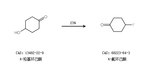 1.通过4-羟基环己酮合成4-氟环己酮,收率约23%;