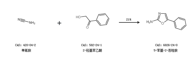 1.通过单氰胺和2-羟基苯乙酮合成5-苯基-2-恶唑胺,收率约21%;