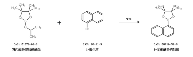1.通过1-溴代萘和联硼酸频那醇酯合成1-萘硼酸频呐醇酯,收率约68%;