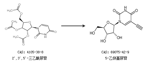 1.通过2'',3'',5''-三乙酰尿苷合成5-乙炔基尿苷