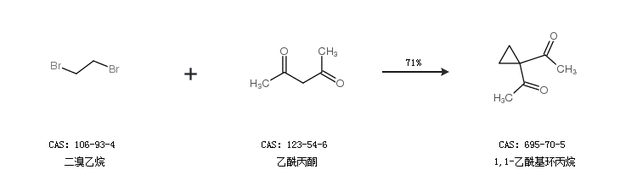1.通过二溴乙烷和乙酰丙酮合成1,1-乙酰基环丙烷,收率约71%;