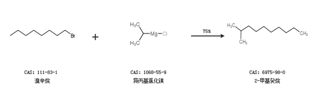 2.通过溴辛烷和异丙基氯化镁合成2-甲基癸烷,收率约75%;