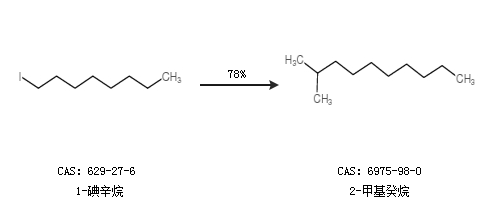 1.通过1-碘辛烷合成2-甲基癸烷,收率约78%;
