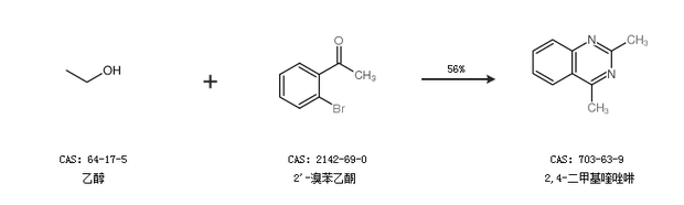 1.通过乙醇和2''-溴苯乙酮合成2,4-二甲基喹唑啉,收率约56%;