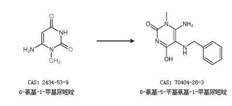 中文名称 6-氨基-5-苄基氨基-1-甲基尿嘧啶