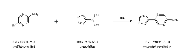 1.通过2-氨基-5-溴吡嗪和3-噻吩硼酸合成5-(3-噻吩)-2-吡嗪胺,收率约70%;